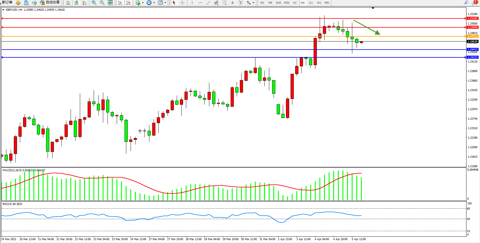 英镑美元GBPUSD ——4小时K线图显示:
