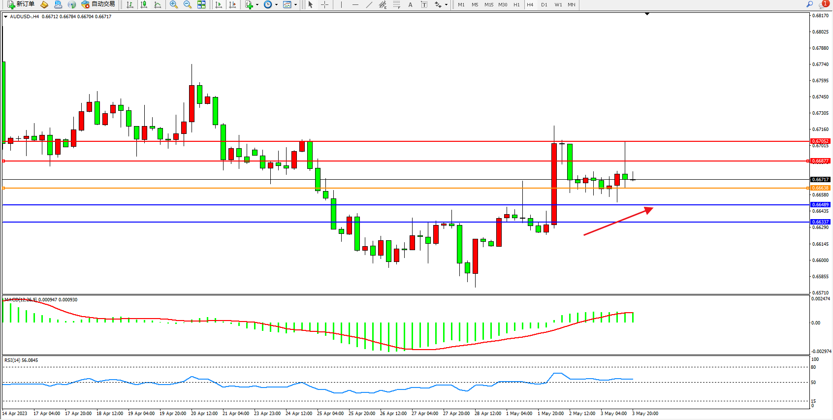 交易策略:0.66638上方看涨,目标0.66877  0.67052