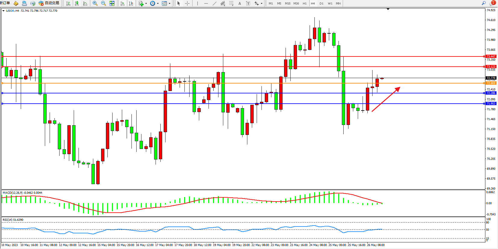 交易策略:72.600上方看涨,目标73.123  73.447