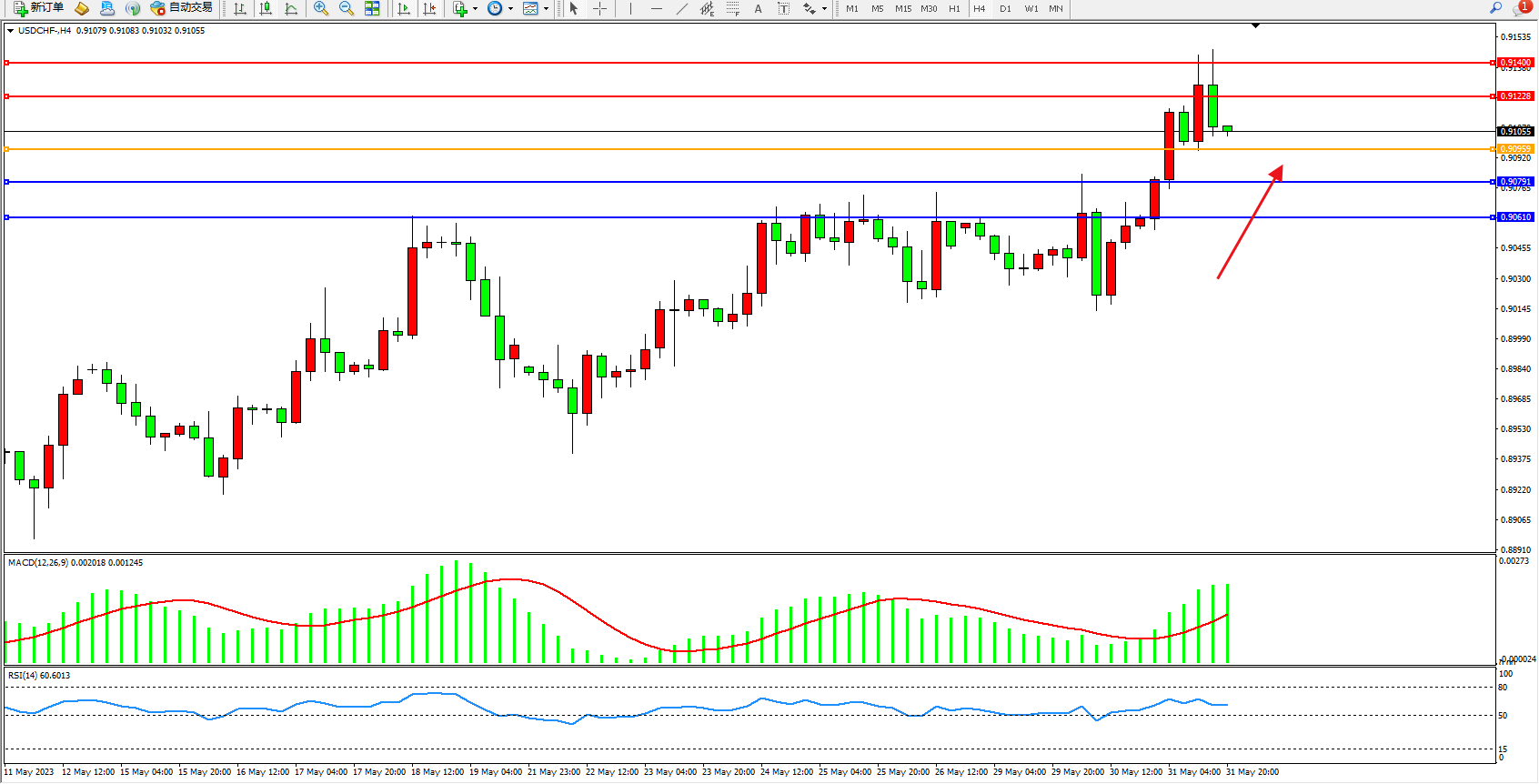 USDCHF:高位上扬