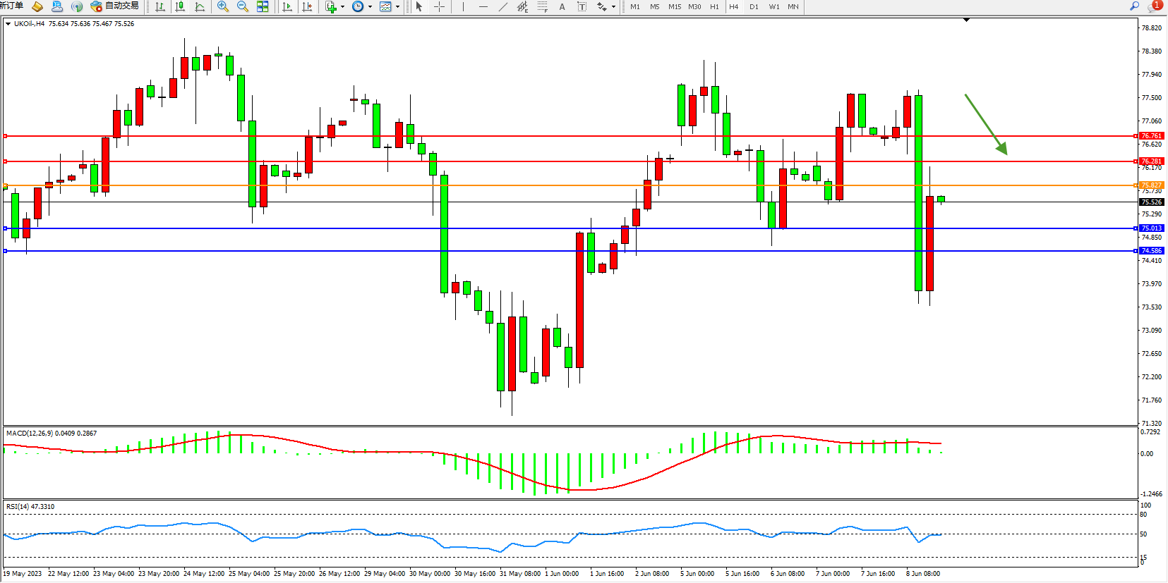 阻力位:76.281  76.761
