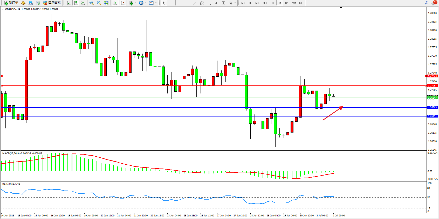 交易策略:1.26847上方看涨,目标1.27087 1.27273