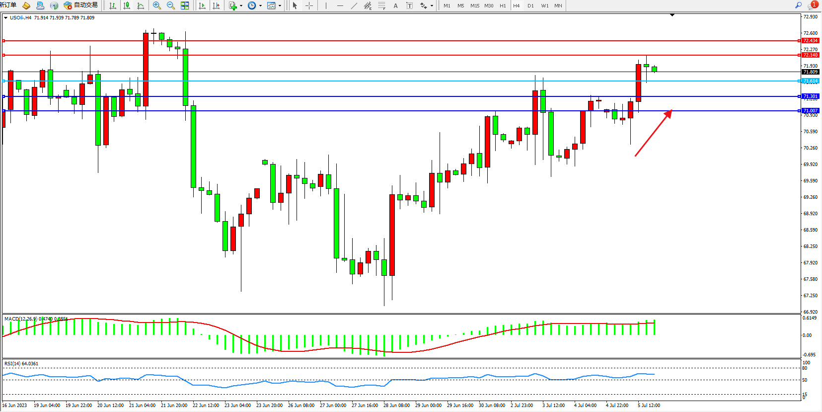交易策略:71.614上方看涨,目标72.140  72.434