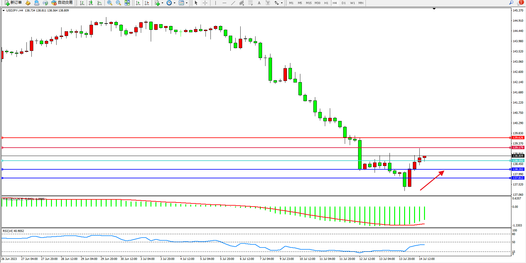 交易策略:138.593上方看涨,目标139.179 139.626