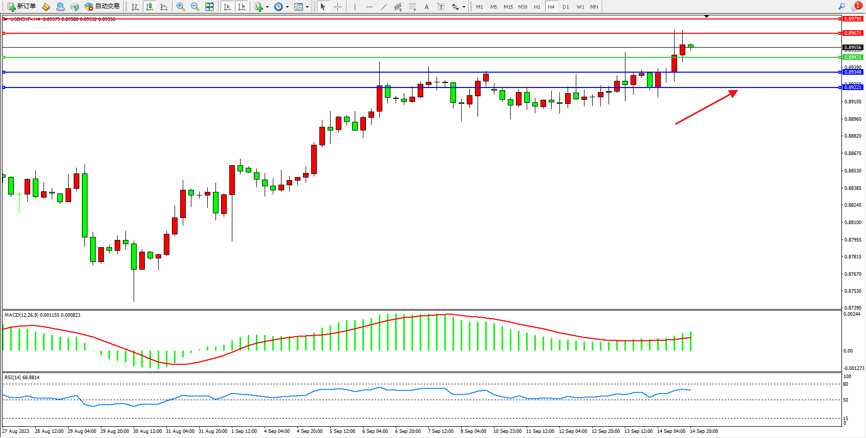 交易策略:0.89471上方看涨,目标0.89671  0.89790