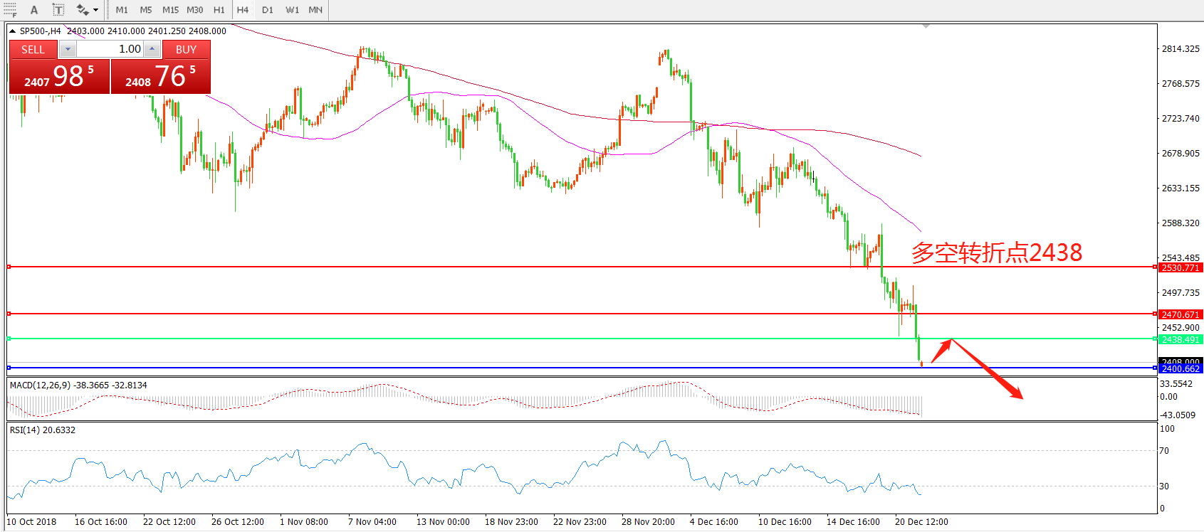 交易策略:在2438之下看跌,目标2400 2360