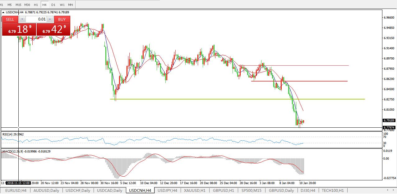 美元兑人民币USDCNH4小时图: