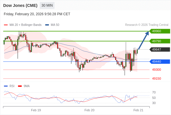 在 49440 之上,看涨,目标价位为 49790 ,然后为 49960 。