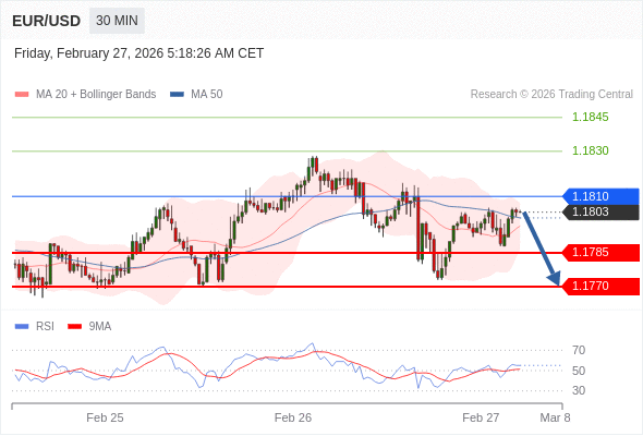 交易策略: 在 1.1810 之下,看跌,目标价位为 1.1785 ,然后为 1.1770 。