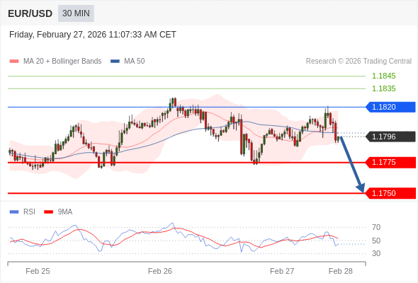 交易策略: 在 1.1820 之下,看跌,目标价位为 1.1775 ,然后为 1.1750 。