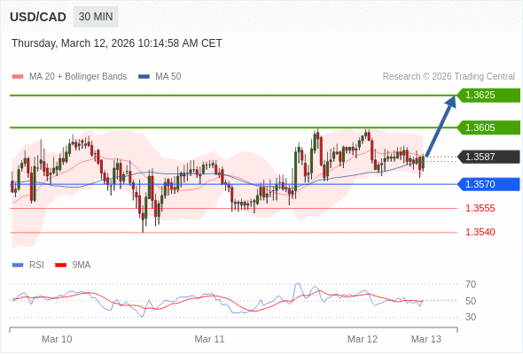 在 1.3570 之上,看涨,目标价位为 1.3605 ,然后为 1.3625 。