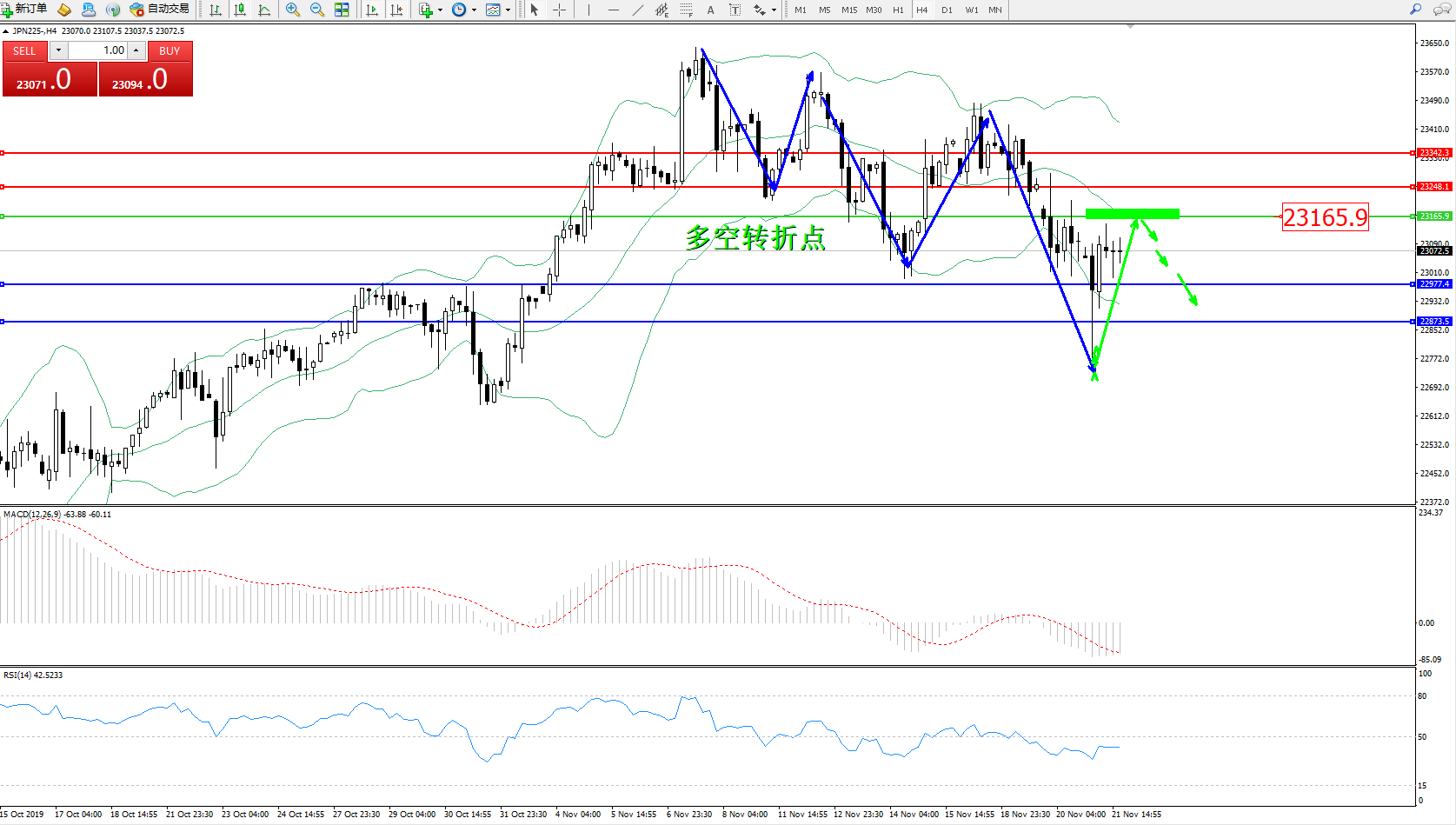 交易策略:23165下方看跌,目标22977、22873