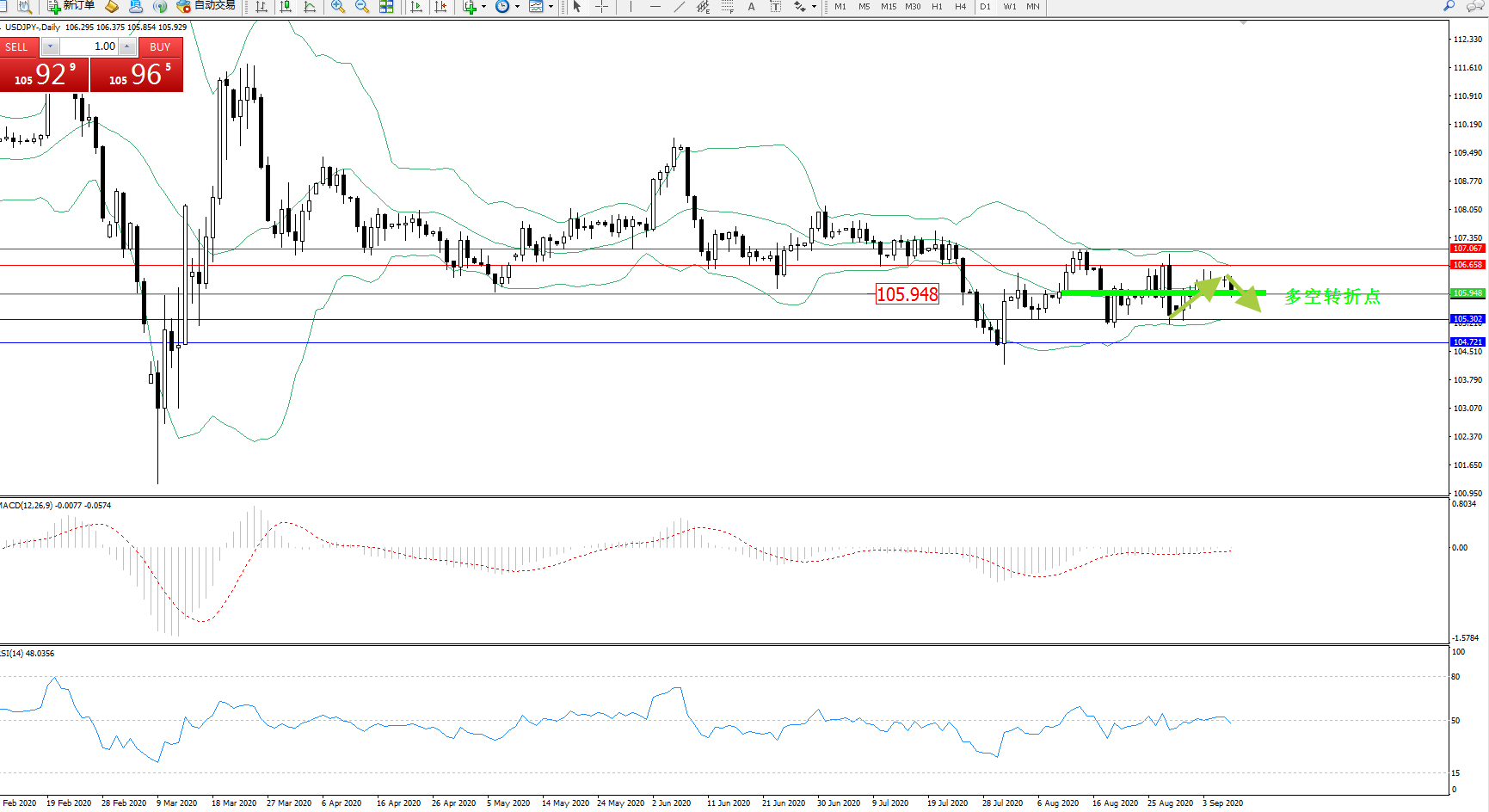 多空转折点:105.948
