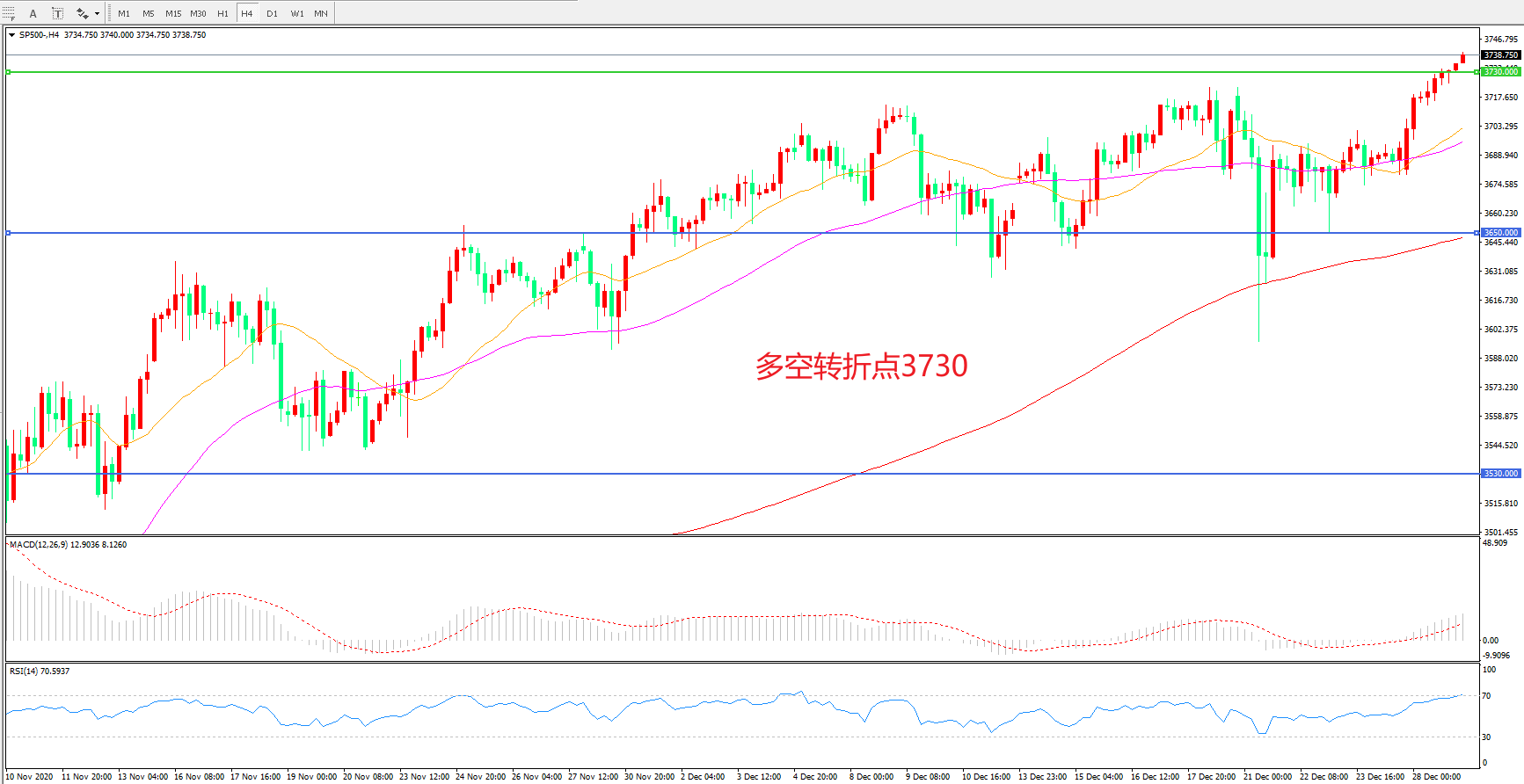 多空转折点:3730.00