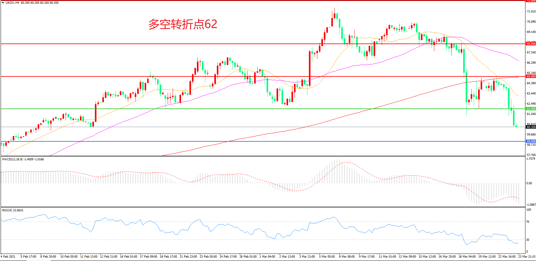 交易策略:在62.00之下看跌,目标59.00    56.00