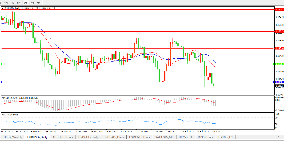欧元兑美元EURUSD   日线图: