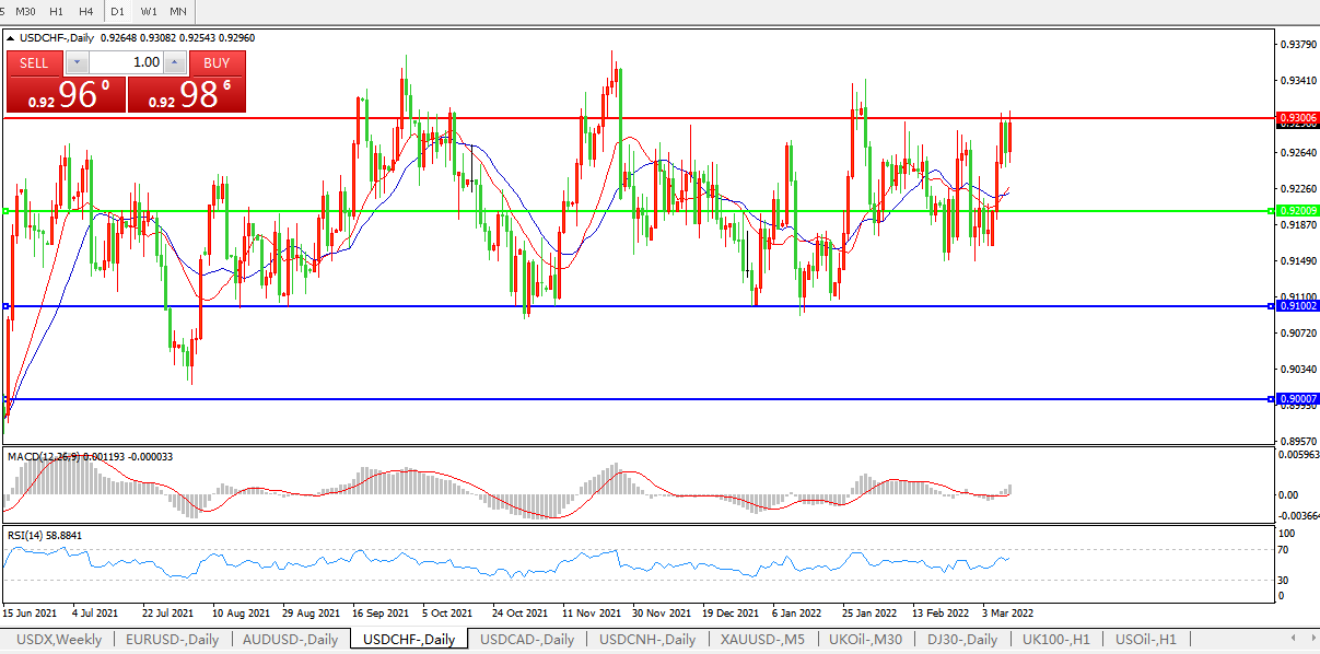 美联储紧缩预期稳定,美元兑瑞郎继续上攻