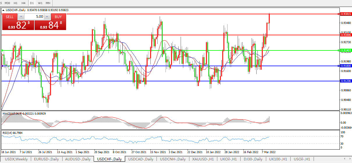美元兑瑞郎USDCHF 日线图: