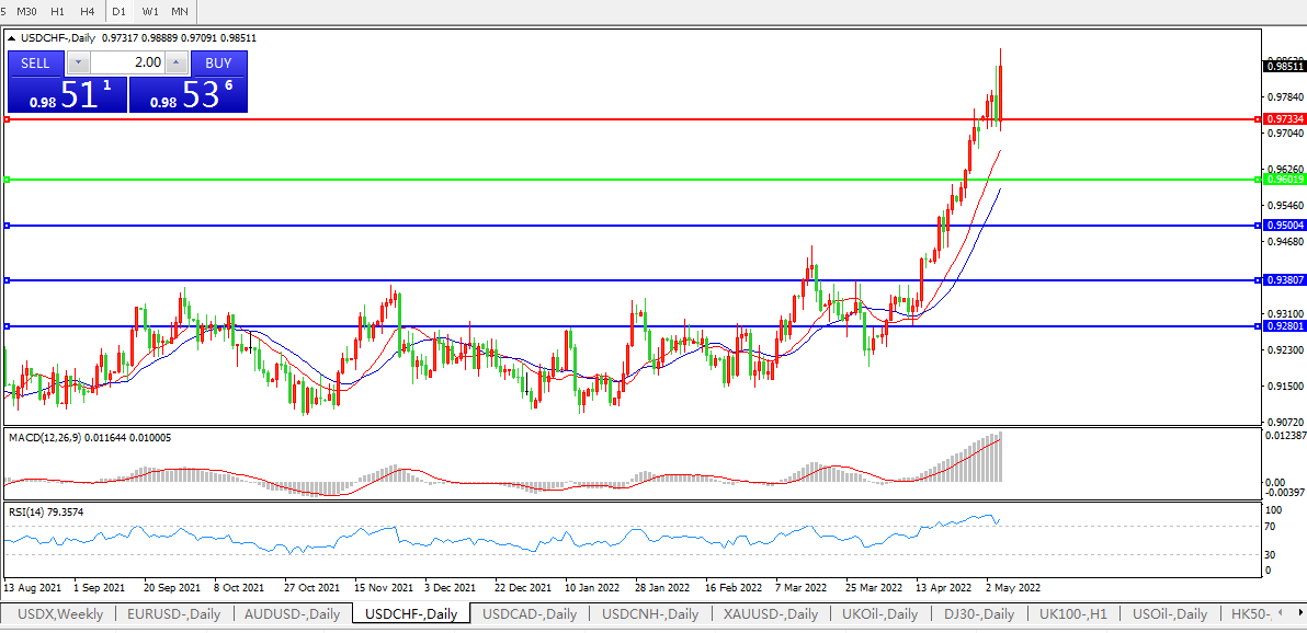 国债仓位及资金调整,美元兑瑞郎继续冲高