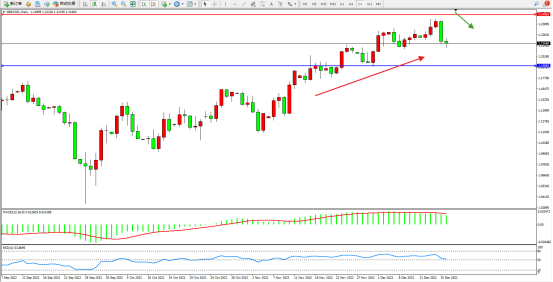 英镑兑美元上周震荡回落,英国央行放缓升息步伐施压英镑,市场预计英国央行可能会在2023年2月的下一次会议上将加息步伐放缓至25个基点