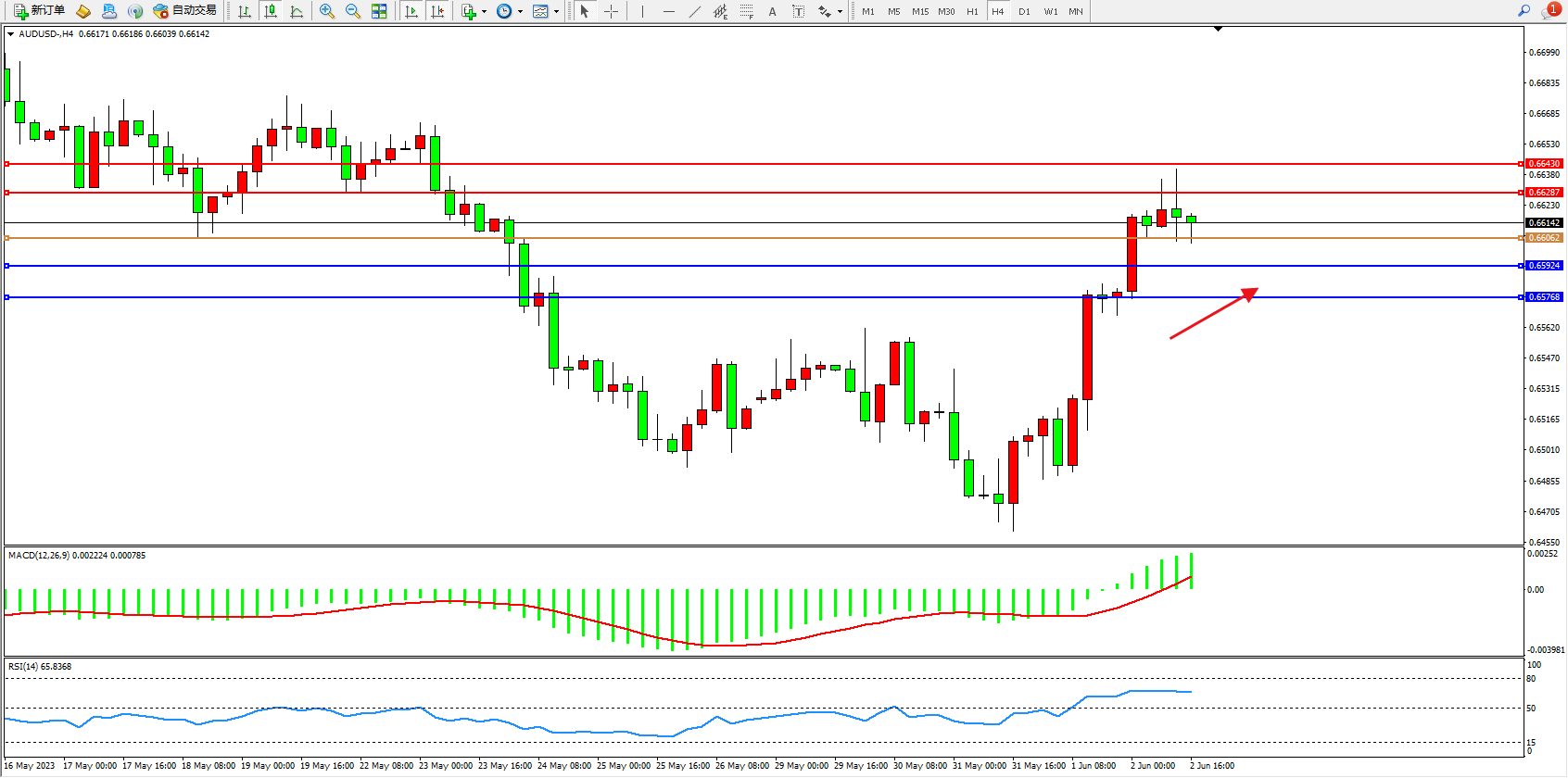 阻力位:0.66287 0.66430