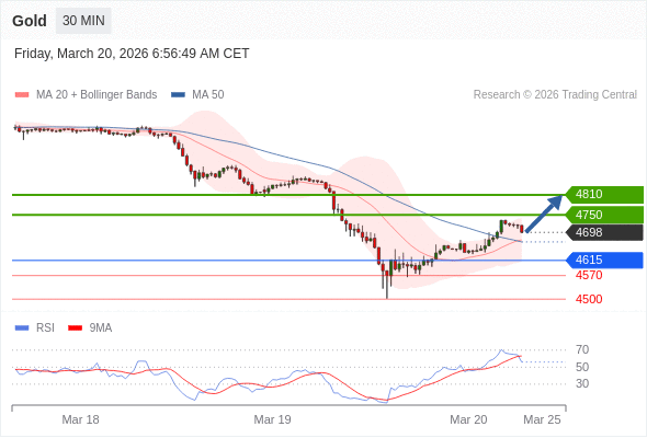 在 4615 之上,看涨,目标价位为 4750 ,然后为 4810 。